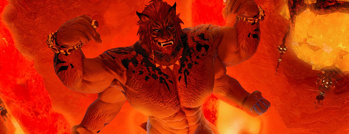 Hair: Long, neatly kept mane with a gold pendant adorning his braid. Amber colored hair and fur with black stripes.